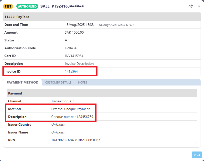 External Payment Feature API endpoint: PayTabs now empowers merchants with the ability to enable external payment for invoices directly within the PayTabs API endpoints. This innovative feature lets you mark invoices as paid for transactions conducted outside of the PayTabs system, such as cash, cheques, point-of-sale, or bank transfers. Stay organized and keep your records accurate, even for payments processed through external methods. To know more please check our Invoice External Payment (Mark as Paid) | PayTabs Technical Portal manual.